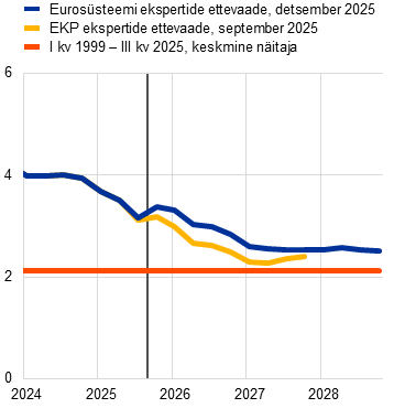 Eurosüsteemi ekspertide ettevaade | detsember 2025 | 1,4 | 1,2 | 1,4 | 1,4 | 2,1 | 1,9 | 1,8 | 2,0 | 2,4 | 2,2 | 1,9 | 2,0 | |
