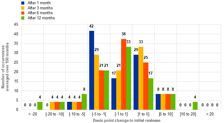 The distribution of revisions of euro area aggregates of MFI interest rate statistics displayed in Chart 4 does not include ad hoc revisions.